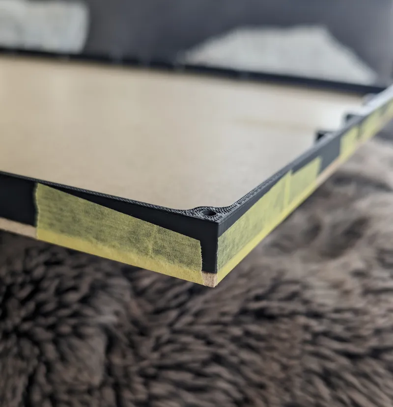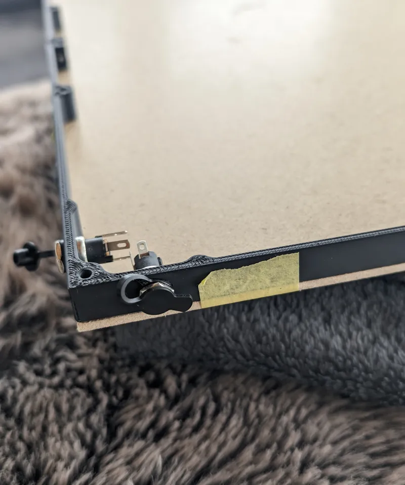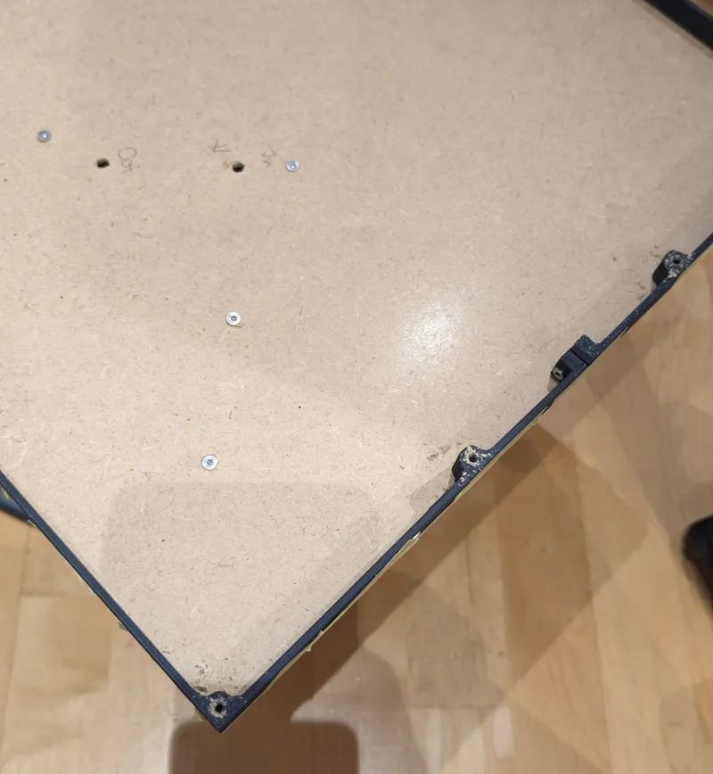 10. Prepare the frame, screw it together and make it fit with the spacers to the MDF plate, because of the cutting there could be some tolerances.