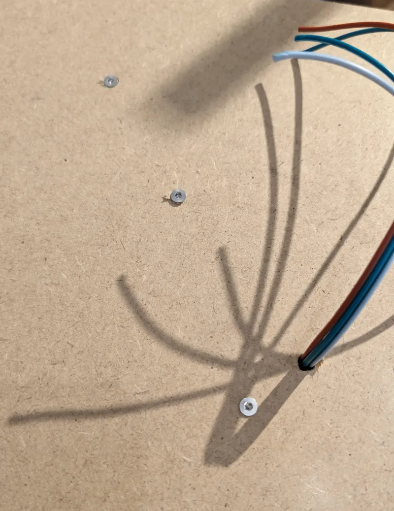 9. Drill holes for the cables in the MDF plate so you can lead the wires through