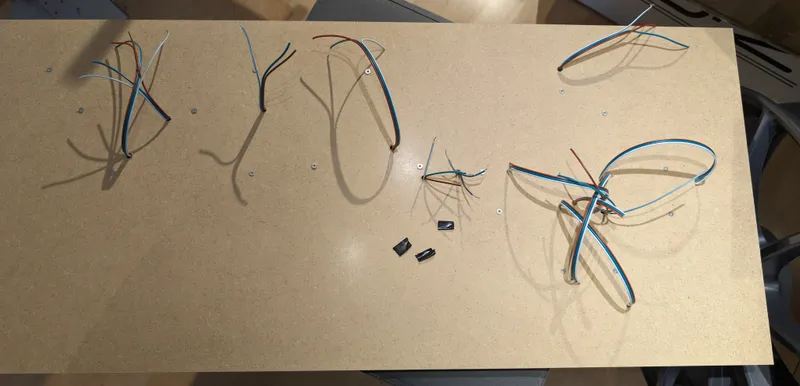 15. Prepare the wiring and test it first before soldering. I used WLED for controlling the LED strip. There are enough instructions online. Keep attention that the Dataline has to move from the first to the last letter in one way. I soldered everything like that: