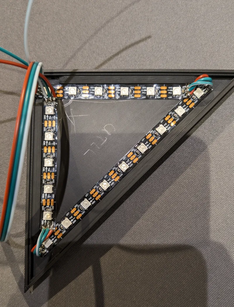 Equiped with WS2812b LED Strips (60LEDs/m) it's possible to change colors.