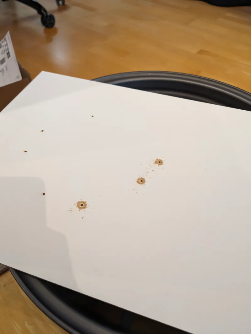 6. Use a center punch to mark the holes on the mdf plate and drill them afterwards with an 3-3.5mm drill