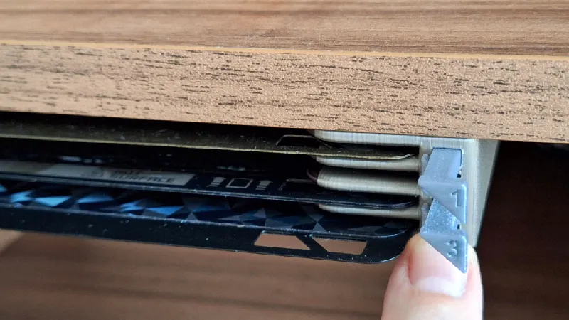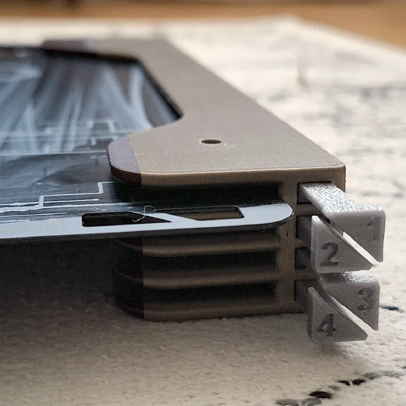 A have many build plates for both Prusa and Bambu printers and very limited space for storage. So I decided to create plates holder with eject button for easy insertion and removal.