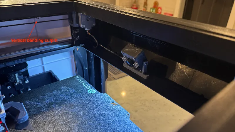 I experienced a problem that took me a while to sort out if it was my own learning curve with Klipper, or if I had poorly assembled something, or if something needed to be upgraded to higher quality. Long story short, I think all that needs to be done is removing these tension springs from each belt if you want to avoid vertical banding like shown below.
