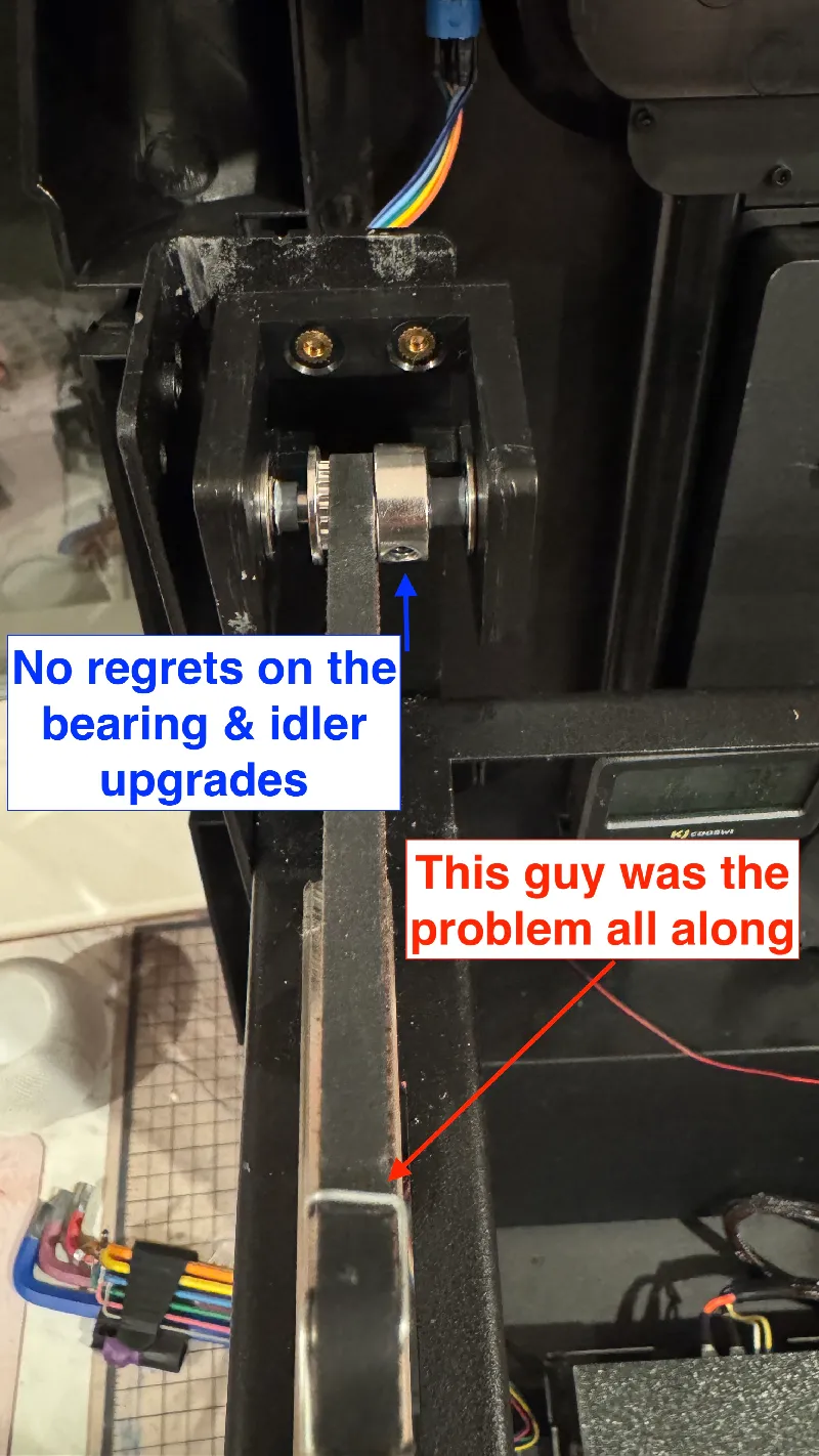 I tried upgrading the bearings and pulleys on all axes to all metal parts with high quality tolerances instead of the plastic parts Qidi shipped originally. The runout on those parts was so bad you could see the wobble by eye during rotations, no measurement equipment necessary.