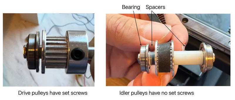 Idler Pulleys - $6 USD, you need QTY 3 with preferred 16 teeth and 6mm wide, but 20 teeth also works if replacing OEM plastic ones, careful to setup Klipper correctly for rotation distance if your tooth count doesn't match mine.