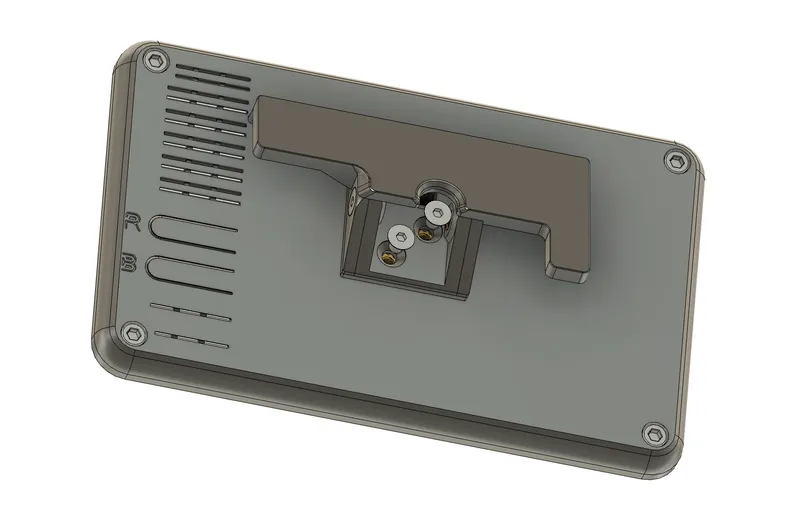 Hold “Mount_Adjustable_Plate[ABS].stl” onto the rear of the screen housing and insert 2 M3x6mm countersunk screws and tighten into place.