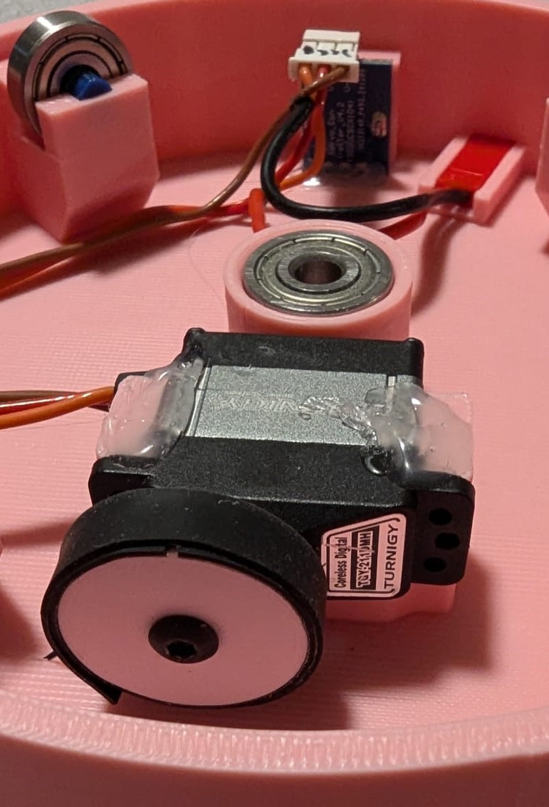 Attach the servo wheel and wrap an elastic band around it for added grip.