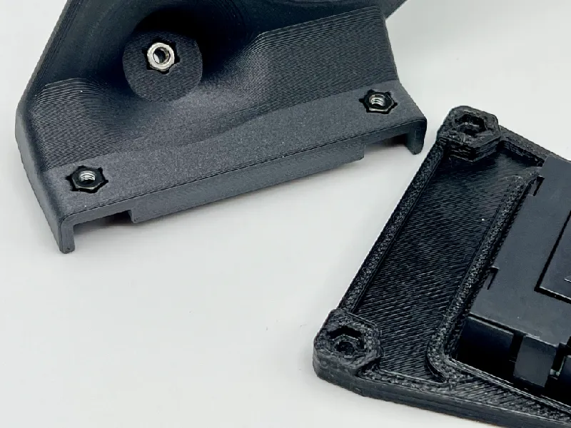Step 3: Press a new M3 nut into the upper screw hole on the camera mount base, and press the two nuts removed from the thermometer bracket in the previous step into the two lower holes of the camera mount base.
