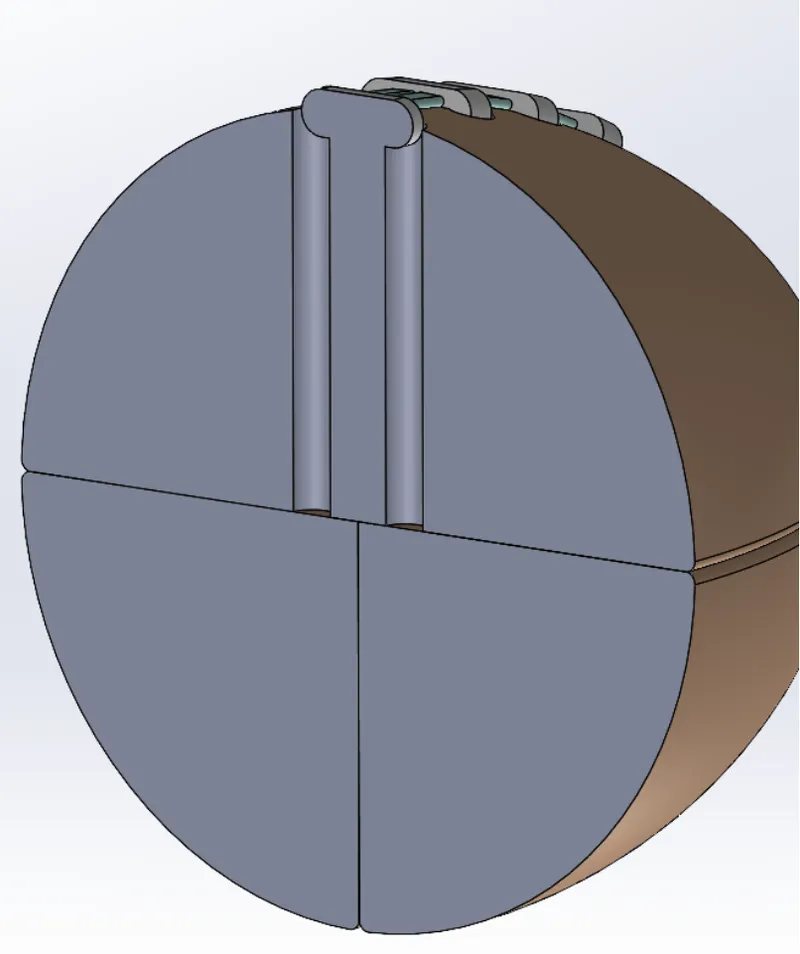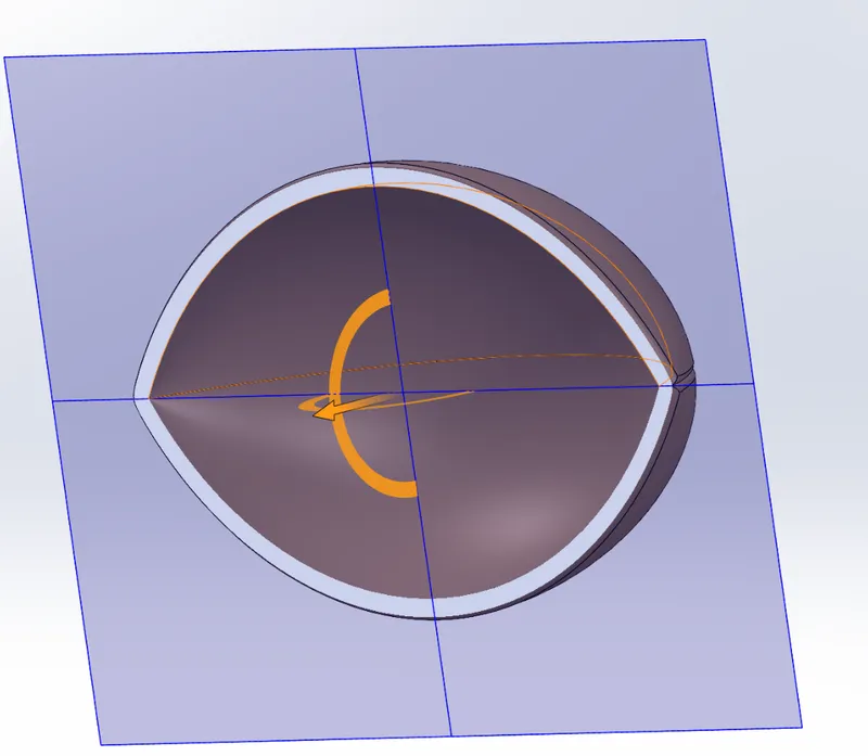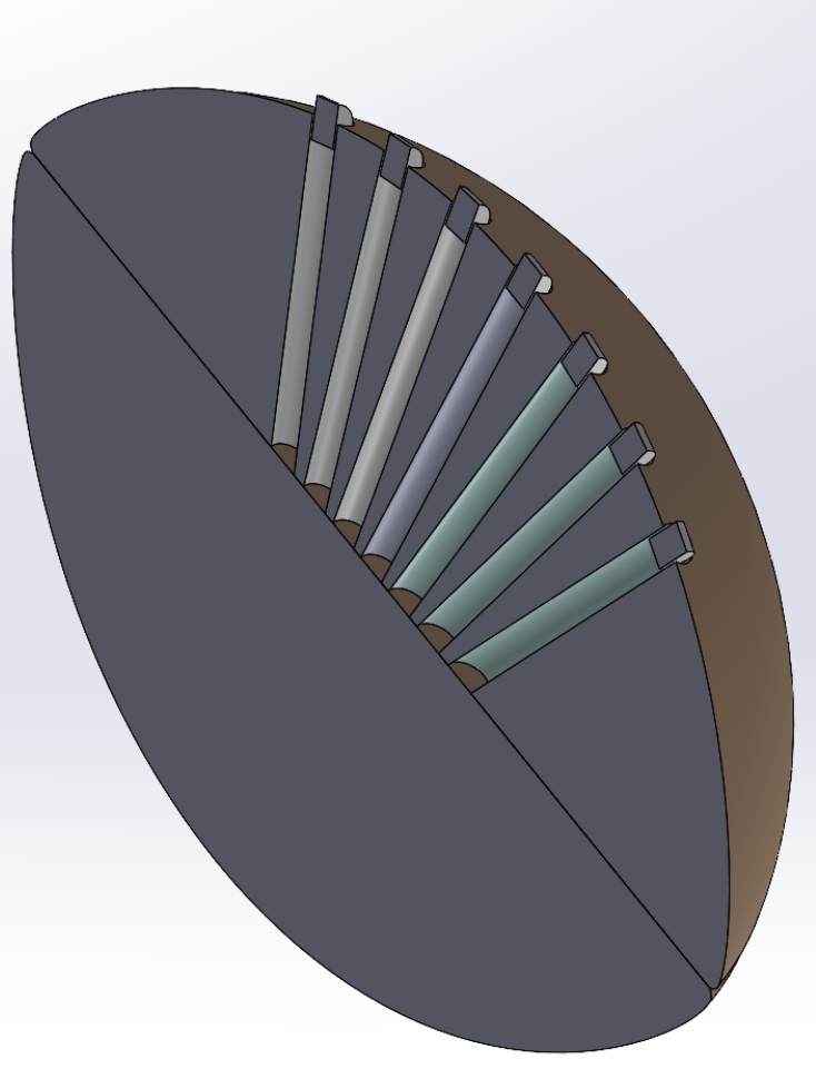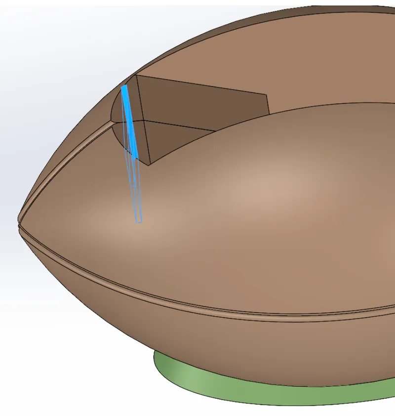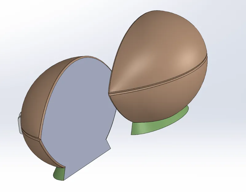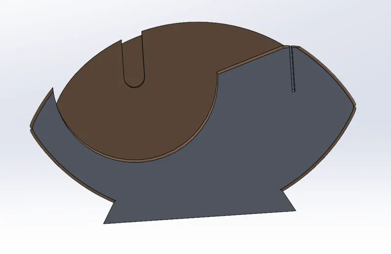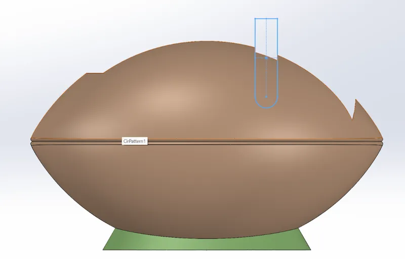 Also as a result of having the object be solid, our original idea was to have the football cut into 2 halves. Then there would be 2 cylinders that were different sizes and when they came together inside of the circle of the tape it would be able to move (This idea was taken from actual tape dispensers as seen in the second picture in the first idea section). But that was when the inside of the football was hollow and would split into two bodies. So instead I made the sketch you see above on the top plane and then cut-extruded it by midplane. This was made so the print was easier and it just made more sense when having a solid body.