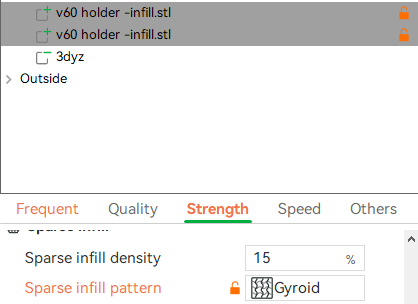 You only need to change the Infill % and the patterns while keeping the walls for the Infill parts = 0