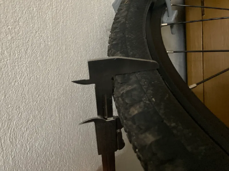 You should measure the thickness (or width) of your tire, and the overall height, including the tire and the rim.