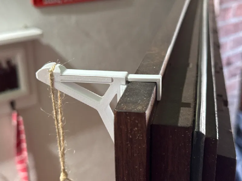This holder slides on top of a window or door, for you to hang some lightweight decoration. It is adjustable to the size of your window or door frame. No tools or glue required. can easily be removed.