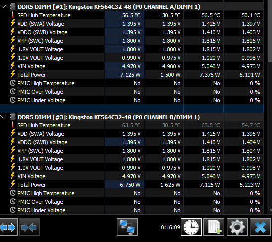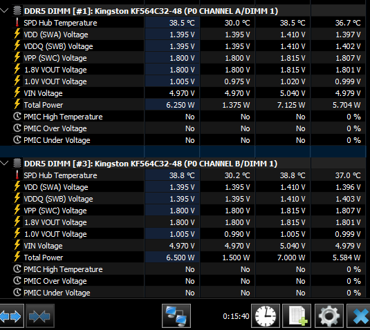 15 minutes AIDA64 memory stress test: ~26-33 degrees Celsius increase without fans.