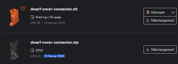 la piece proposée en telechargement par Prusa en fichier .STP n'est pas conforme!! elle n'a pas ete mise à jour depuis le 23 février 2024.