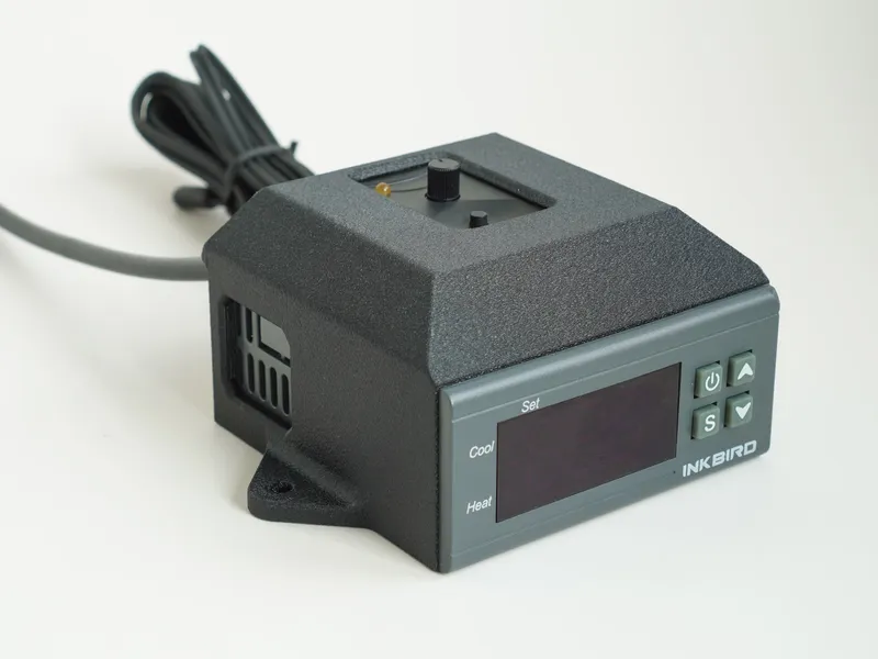 I needed a temperature-controlled fan to vent the fridge's cabinet in the van I am converting. I also wanted to be able to control the RPM to mitigate the noise. So I came up with this: