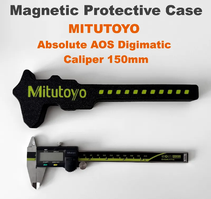 I designed a magnetic case for the MITUTOYO Absolute AOS Digimatic Caliper 150 mm (500-196-30) – the version with a thumb roller. To complete the project, you will need 6 neodymium magnets with a diameter of 8 mm and a thickness of 2 mm. At the bottom, near the magnet, there is a grip that makes it easy to open the case.