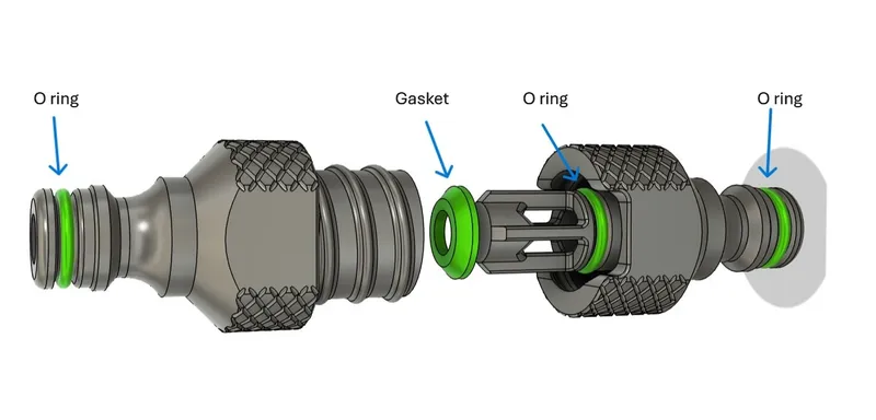 Note: If you do not have TPU, you can use 3 standard O-rings (16mm x 2mm) and a Gasket with external diameter 16, internal diameter 8 and thickness 2 mm.