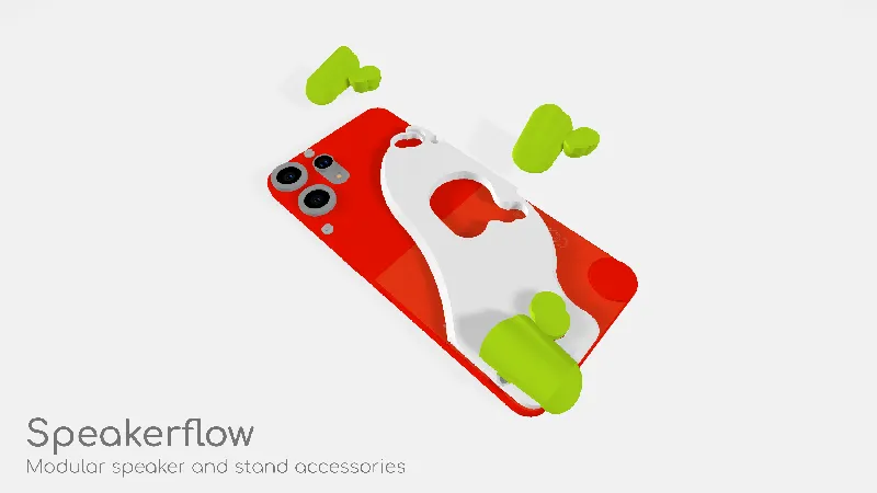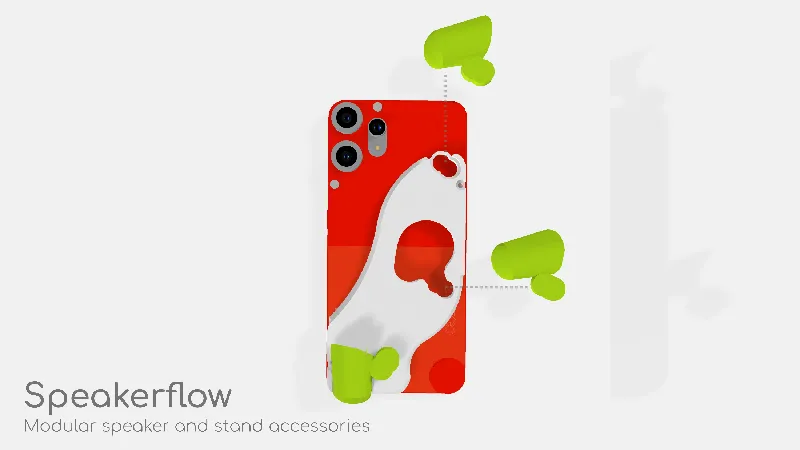 This is a set of modular speaker and stand accessories for CMF phone 2 pro. The functional module can be attached to different spots of the base case, which provides speaker, phone stand and decorations respectively. User can attach more than 1 module to use multiple functions at the same time.