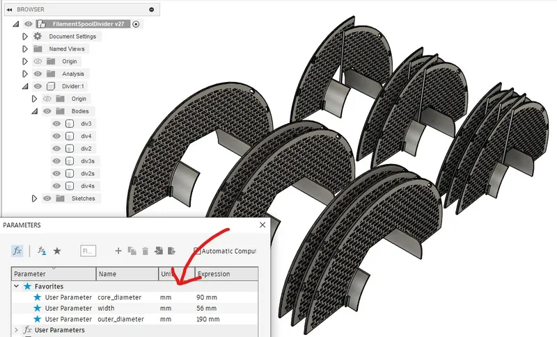 It is printable on a single plate with a small amount of material ~100g even for a four-section divider.