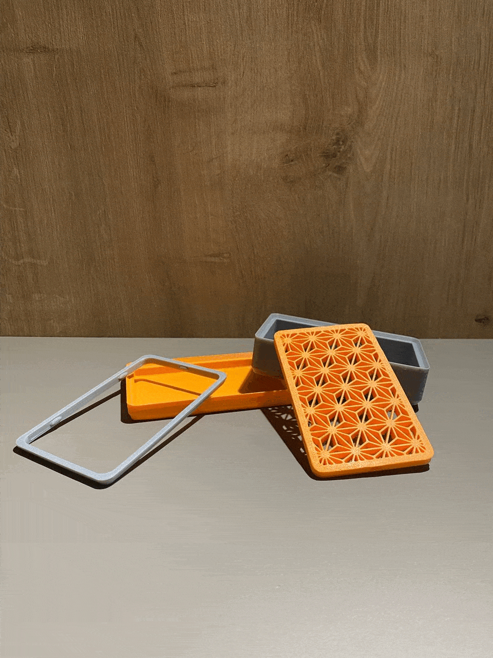 Wet palette for standard melamin sponge. Dimensions for 6x10x2cm, can be bought on Aliexpress. Best to print in 2 different colors, probably gray/white and yellow/orange, though can be whatever you want.