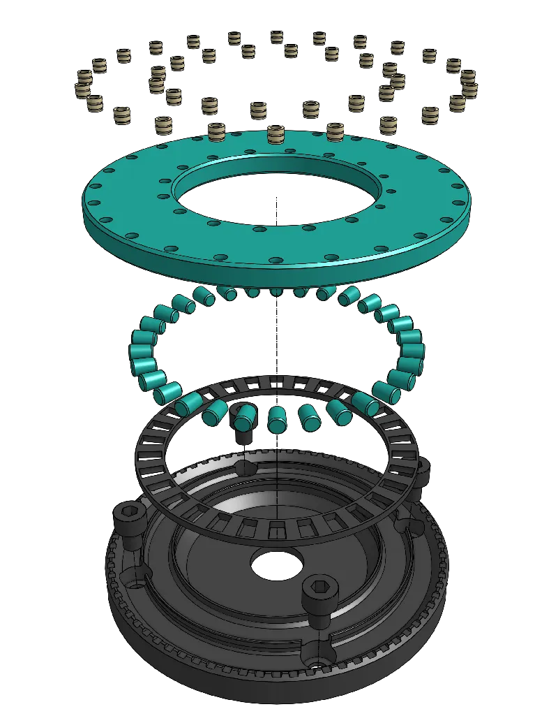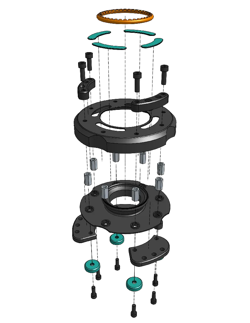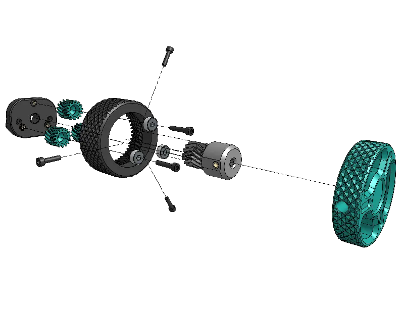 The planetary gearing must be printed in one print as the herringbone spur gears will not assemble afterwards.