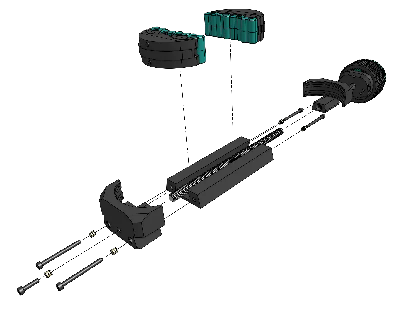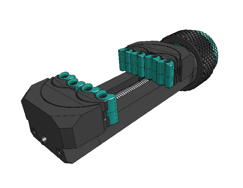 This one is cool, let's you clamp the jaws down with a 3:1 or 1:1 gear ratio using one wheel or the other. Again can use lube here. It's difficult to print - check the instructions. Do NOT over tighten the M3 screws that go into the bearings.