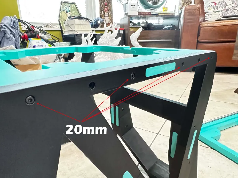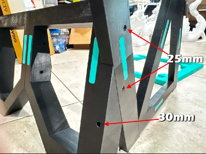 Then, attach each side piece to the back of the frame. For each side, use 1x 30mm and 2x 25mm screws.