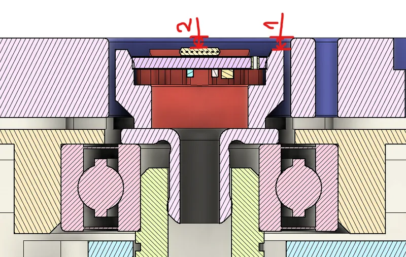 Secondly to glue together encoder-holder to axis-fixture using previously centered wheel-centering-piece as a axis guide.