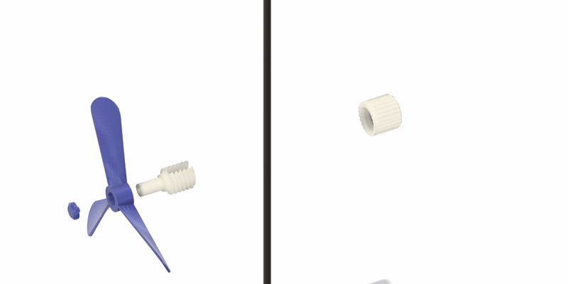 Nach dem Drucken des Ventils, sollte möglicherweise die Achse leicht mit feinem Schleifpapier oder einer Nagelfeile abgeschliffen werden, damit sich der Propeller reibungslos dreht.