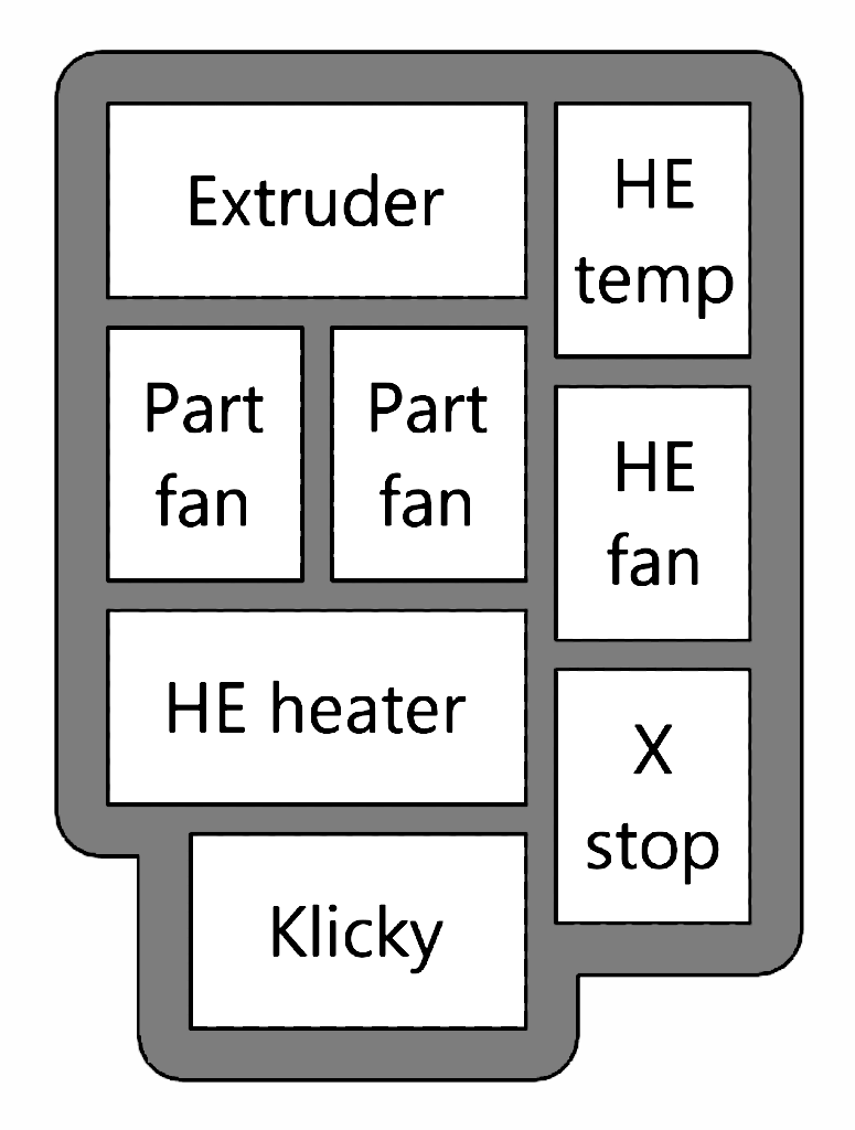 This is a toolhead accessory cable mount and breakout the includes a configuration designed for using a Klicky sensor. I included connectors for every toolhead accessory, including the extruder and hot end heater.