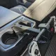 This adapter holds a Nintendo Switch game console, and fits in the nook between the rear cupholders located on the center console.