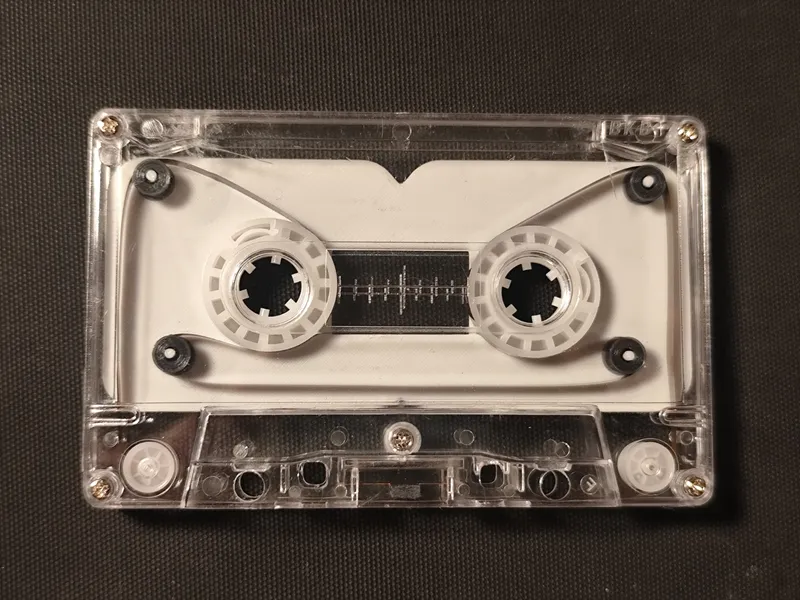 This tape design has been thought to have the tape loop doing a twist in the middle like a mobius strip. This allows you to double the time. *Note:* The part where the tape is reversed will sound muffled. The design of the tape is symmetrical, which allow the tape to be played in the two directions with no problem. Some guides are made to handle the twist of the tape properly. When doing the mobius twist, you will be able to return the tape to play it backward.