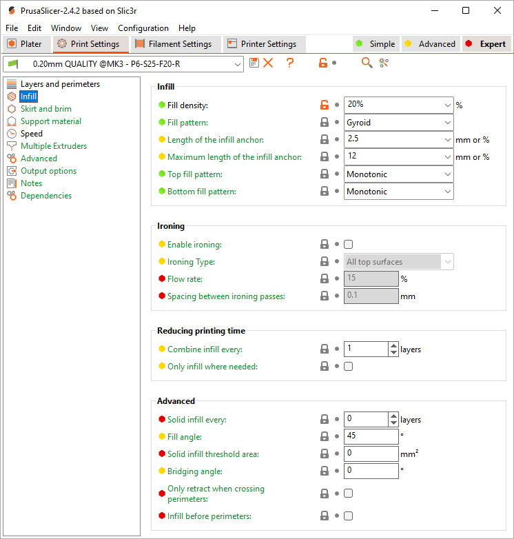 Modified settings: PrusaSlicer > Print Settings > 0.20 QUALITY MK3 > Inflill