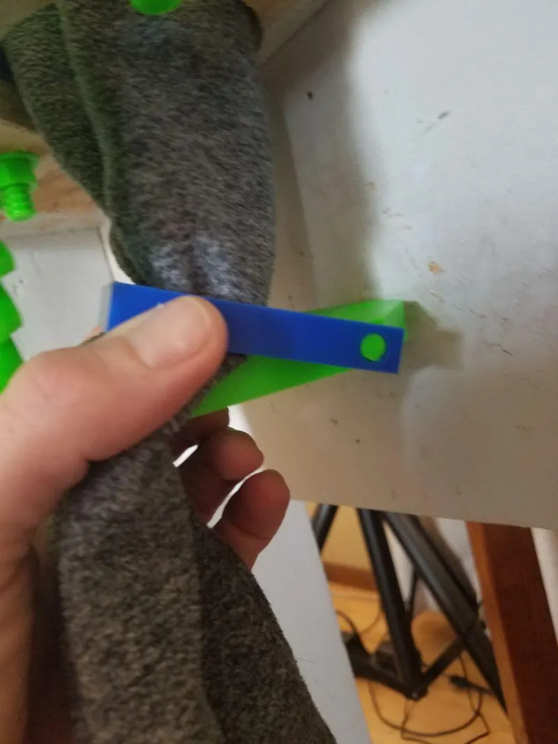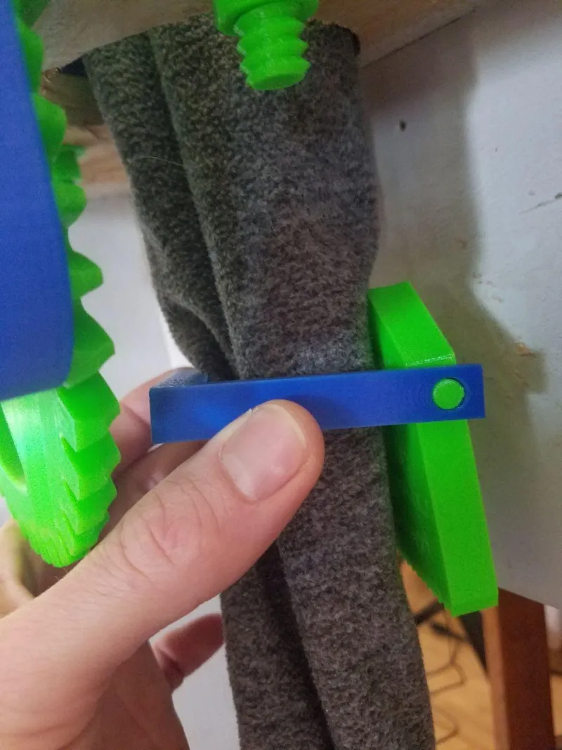 This buckle is attached to the knitted material that flows through the center of a circular knitting machine. I use JeepingJohnny's - CSM: CircularSockMachine.