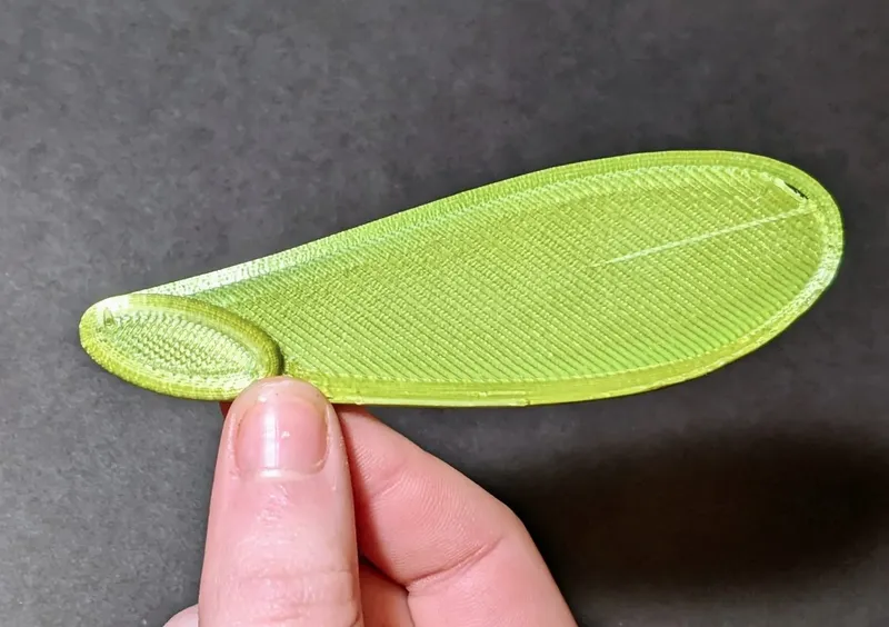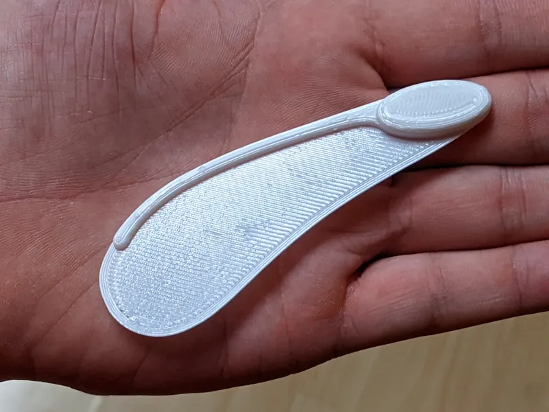 The maple seed measures approximately 100mm in length and requires printing with 0.25mm layers to ensure the wing remains a single layer thick. Achieving the proper weight requires a 100% infill. For optimal durability of the wing portion, I recommend using four perimeters.