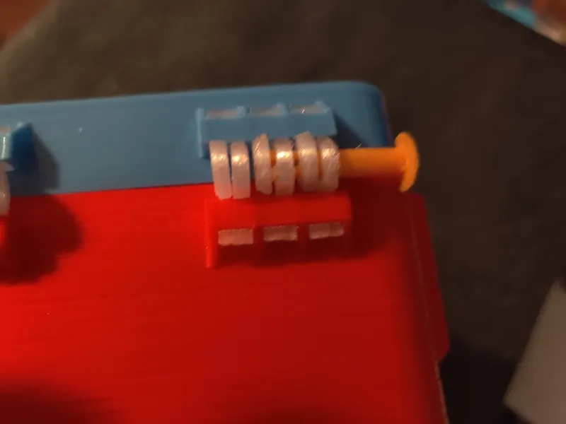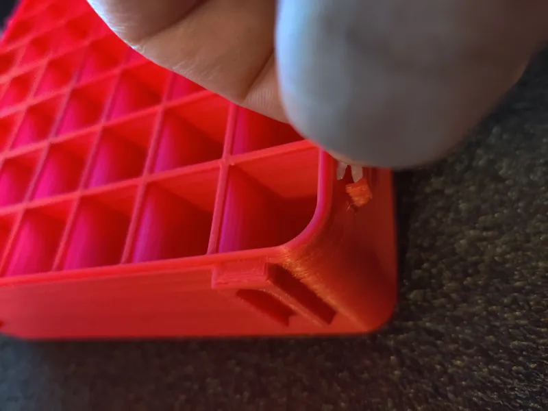 This cartridge box is printed as separate parts that are printed in orientations chosen to maximize strength and then snapped together.