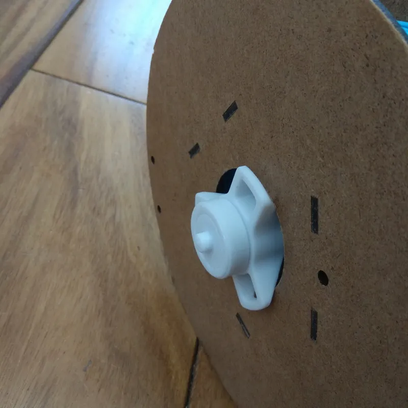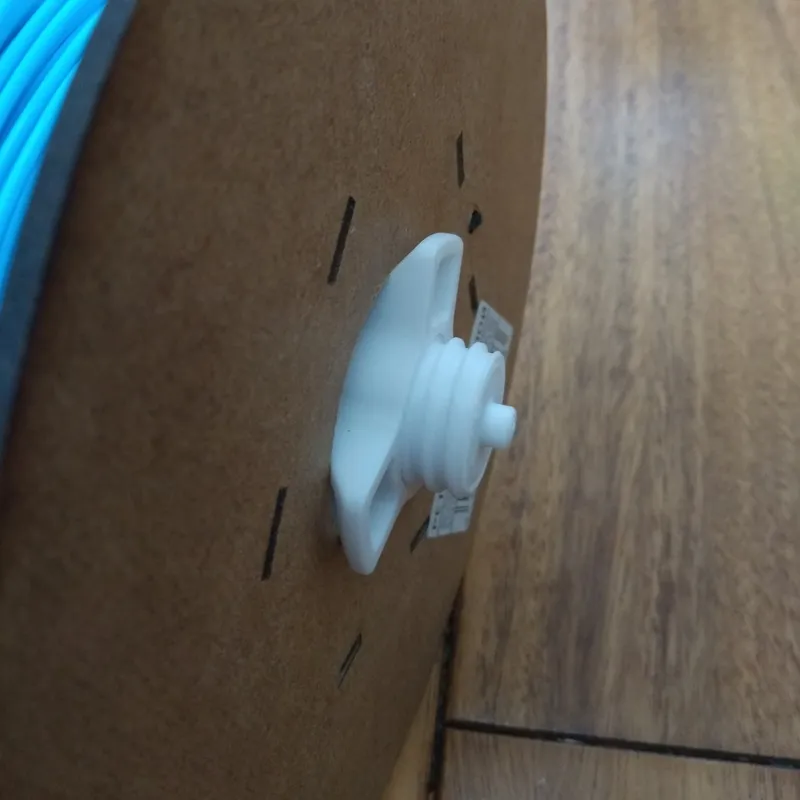В зависимости от ширины катушки можно напечатать проставки для того чтобы катушка была по центру оси.