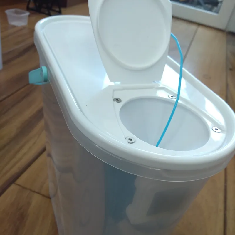 Далее, нужно разметить и просверлить 4 отверстия в крышке контейнера.
