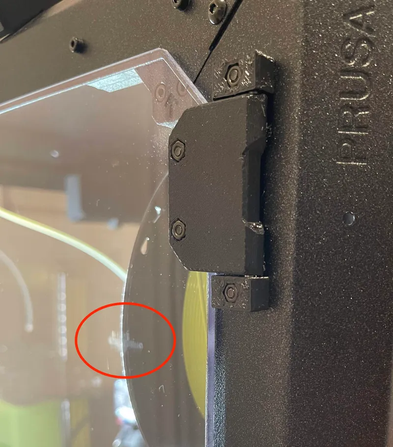 The original Spool-holder-R causes some filament spools to scratch against the door when the extruder pulls on the filament, causing visible scratch damage to the door.