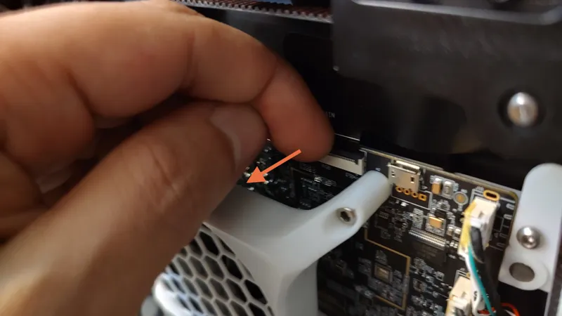 - Use 2 M3 x 6mm screws that were previously holding the motherboard to secure the mount.