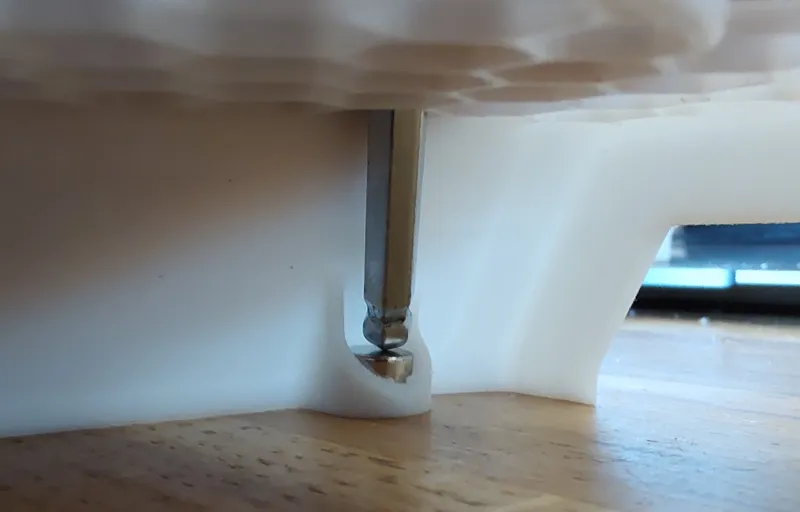 - Insert the magnets into the motherboard mount from the back and push them using the big Hex key you received with the printer for example. Push them until they are sitting flush with the top surface.