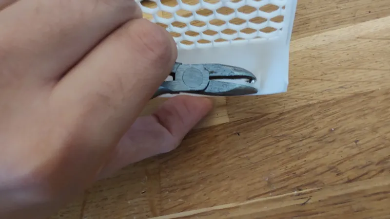 Start by placing it by hand like so, then use a pliers to push it further in. And finally push it all the way using the Hex key through the Hex grid.