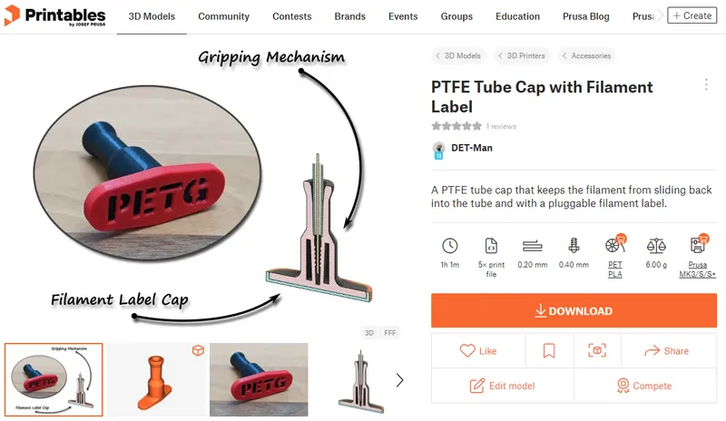 Print some filament sample labels with the filament which is on the spools and clip it on. You will find the handles and caps for different filament types on the project page: PTFE Tube Cap with Filament Label