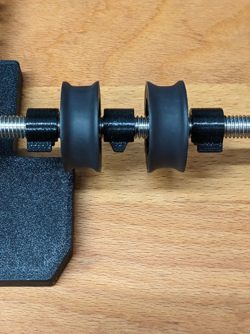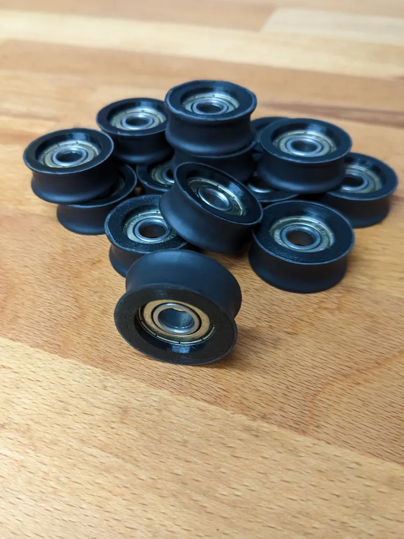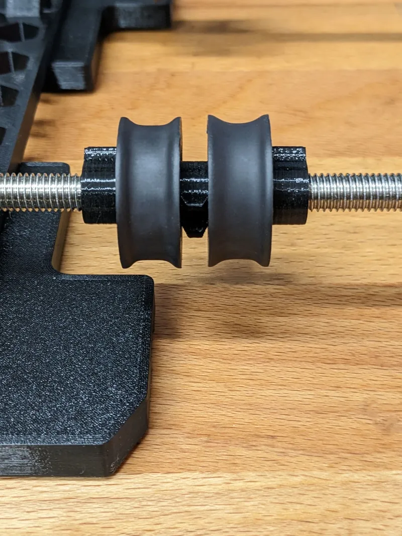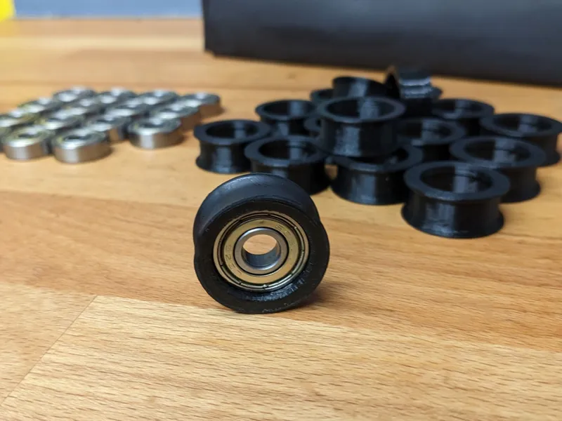 Start by making the pulleys and after pressing the bearings in, I recommend wrapping the printed wheels in Heat Shrink Tube. All the details on this (and also to get details for the M8 clips which we will need in later steps) can be found on the separate model page: Pulley and M8 Threaded Clips for Filament Rollers