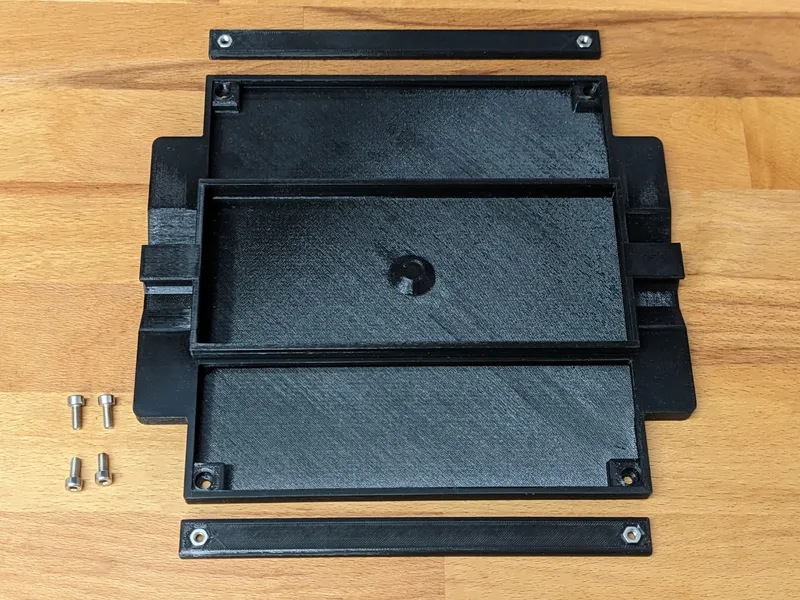 Use M4x8mm screws to mount the sidebars to the tray. (Picture 4)
