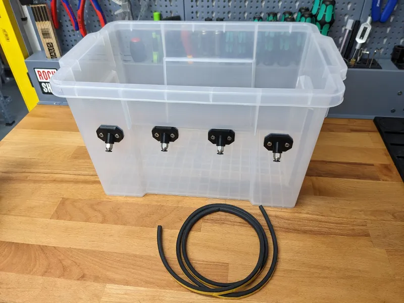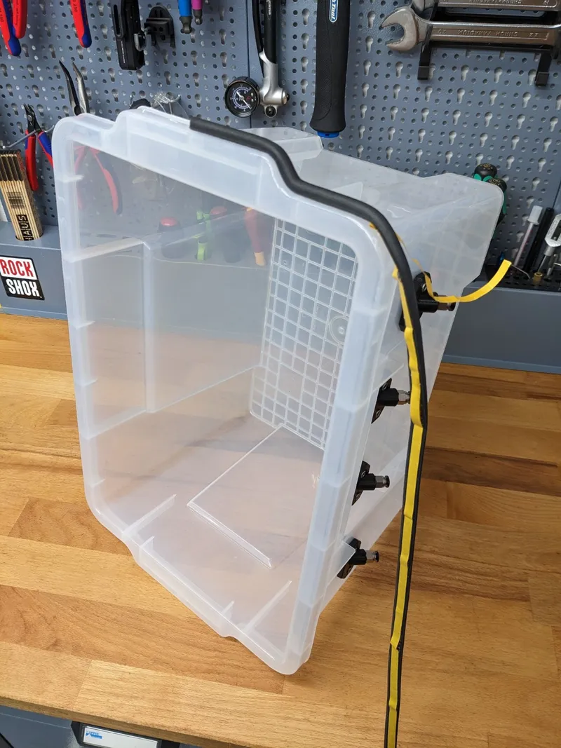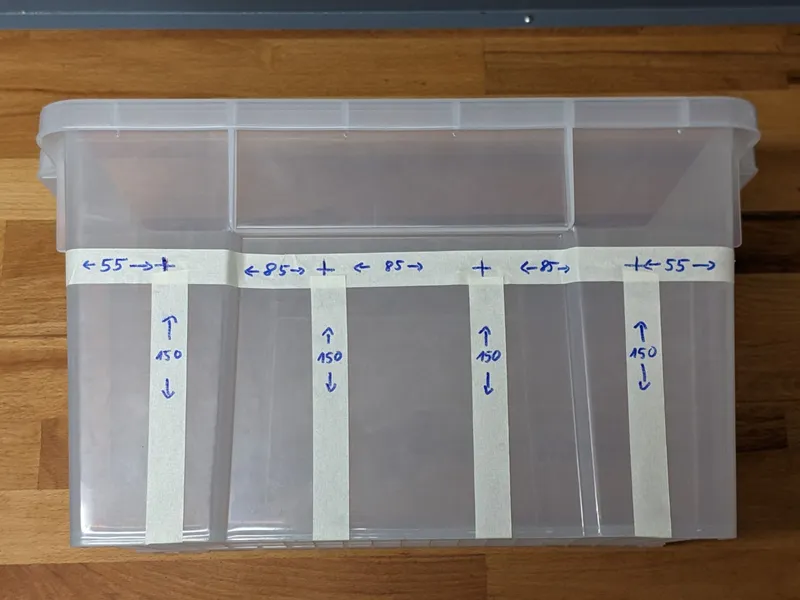Remark: Some parts come packaged in larger quantities than you need for a single drybox, notably the Amazon Basic 21L container (which is the most expensive part) comes as a set of three. I would recommend planning at least two dryboxes. After you've built and used your first box, you'll most likely end up building a few more anyway. At least that is my experience :-)