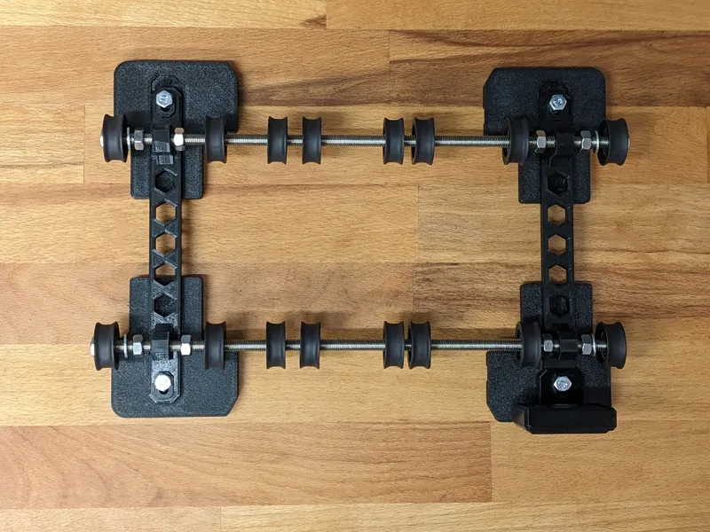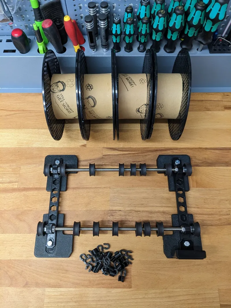 It will depend a bit on the spools you want to put in the box if this setup (one center clip in-between two pulleys) works for you. For 4 spools of Prusament (or similar) it works perfectly. But just print some spare clips and test a bit yourself. The main idea of the clips is that it is easy to rearrange the pulleys without the need of reassembling the complete gantry.