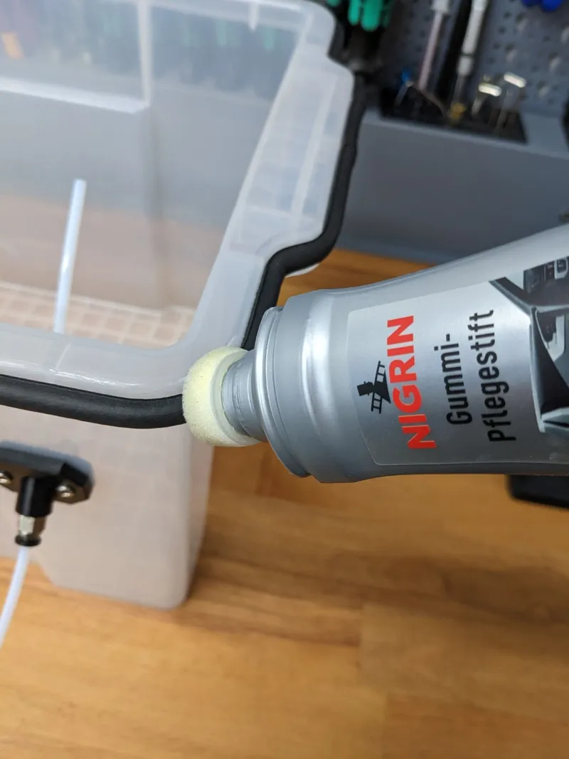 Apply some lubricant to the seal for the lid to easily slide over the sealing tape. (Picture 5)