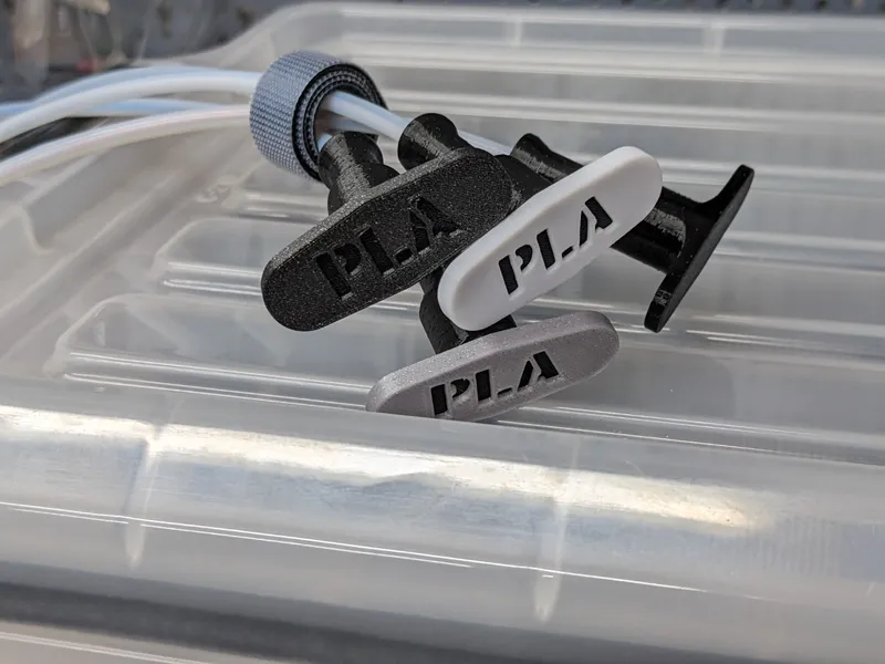 Special caps for the reverse bowden tubes, with labels and a gripping mechanism that prevents the filament from slipping back into the tube.