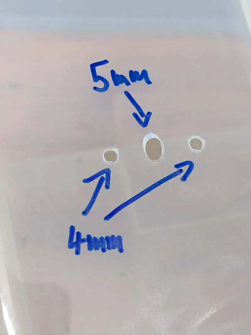 Drill two 4mm holes for each filament outlet (where the screws will hold the two plates).